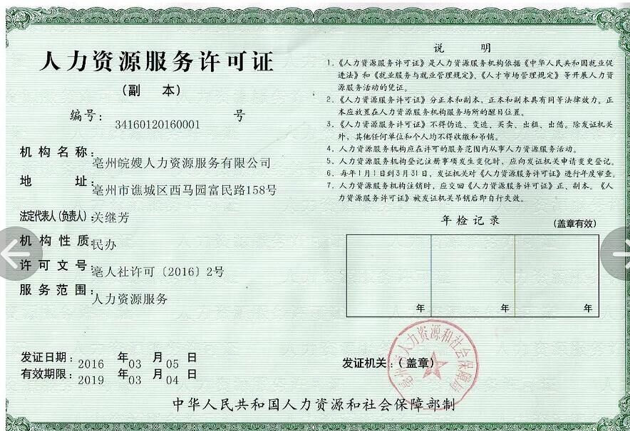 人力資源經(jīng)營(yíng)許可證